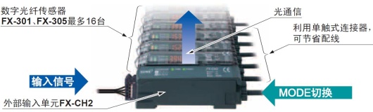 無(wú)需對(duì)傳感器本體進(jìn)行操作,利用PLC·可編程智能操作面板和按鈕等外部信號(hào)即可一次性地對(duì)最多16臺(tái)數(shù)字光纖傳感器進(jìn)行各種設(shè)定/切換。